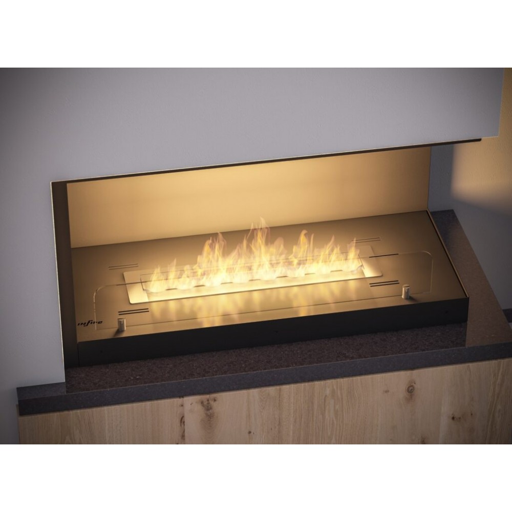 Kominki Inside L & P 800 Vers2 są modelami do prostego montażu my wnęce. Rama kominka jest rozbudowaną stworzoną aplikacją w celu uzyskania systemu likwidacji powstaniu ciśnienia pod palnikiem w razie przelania paliwa. Kominek ma również wbudowaną izolację w górnej części miejsca na zamontowanie go np. w zabudowie Gips-kartonowej. Konstrukcja nie wymaga również robienia otworu w podłożu pod palnik. Wystarczy wstawić kominek w przygotowanym otworze. Wersja L jest kominkiem z LEWĄ, wizytówka natomiast strona P z PRAWĄ . Takie rozwiązanie na obserwację ognia dwóch oraz bardzo dobre rozwiązanie dla miejsca między stronami.