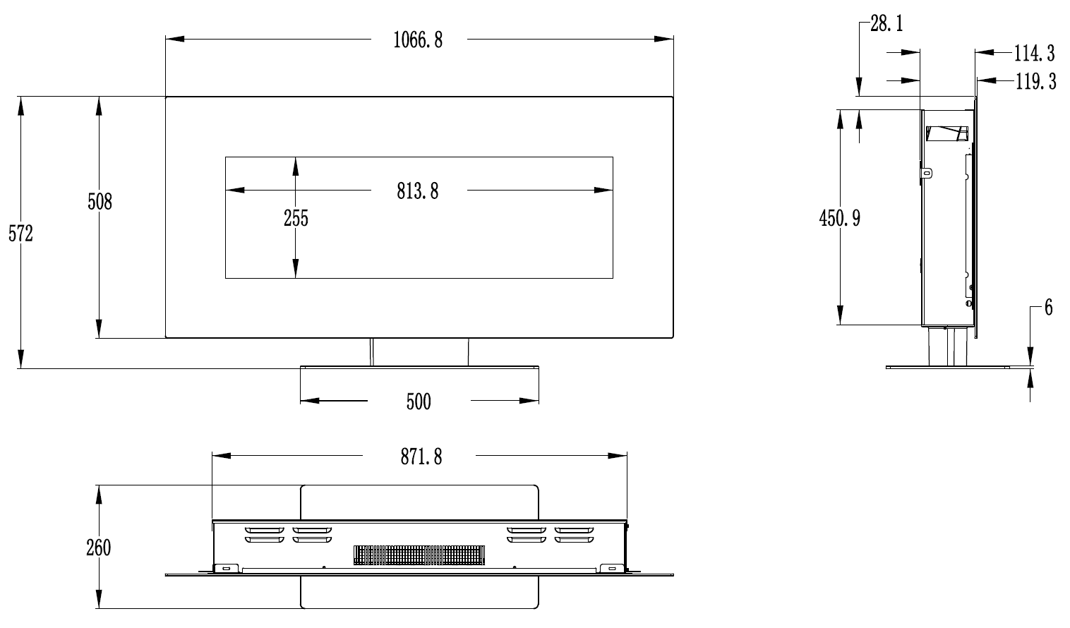Dzięki konfigurowaniu problemu , kominek można powiesić na ścianie lub ustawić na szafce.