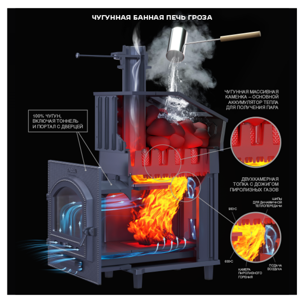 Piec żeliwny do sauny Groza 24 (M) w ruszcie