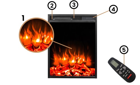 - Realistyczny i energooszczędny płomień w 3 kolory: pomarańczowym, żółtym i żółto pomarszczony , 5 żłobienie płomień, 5 paleniska
